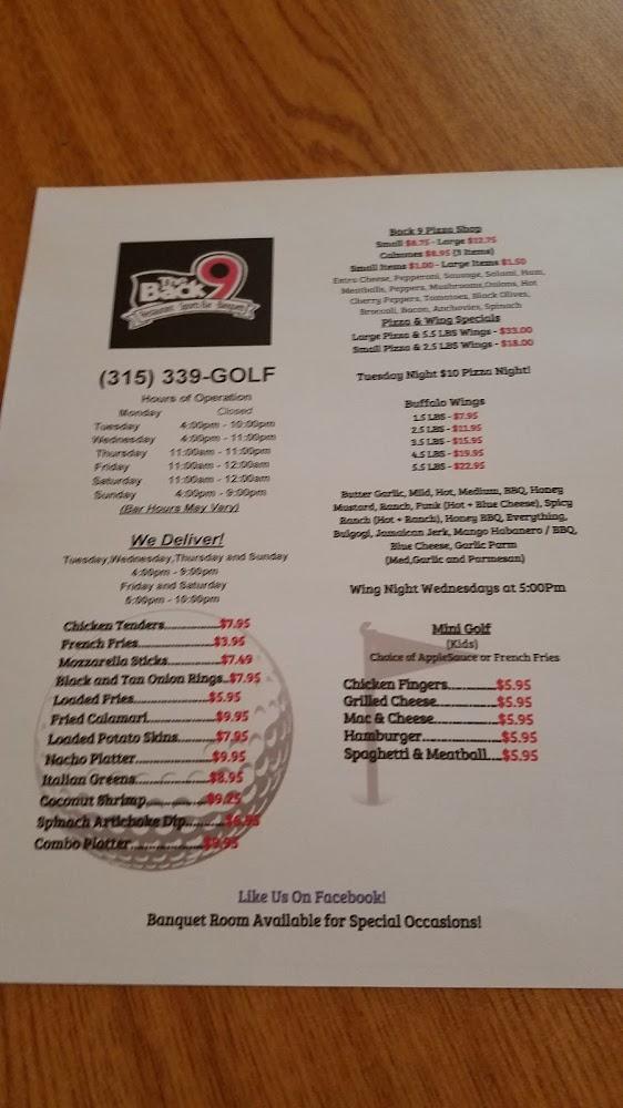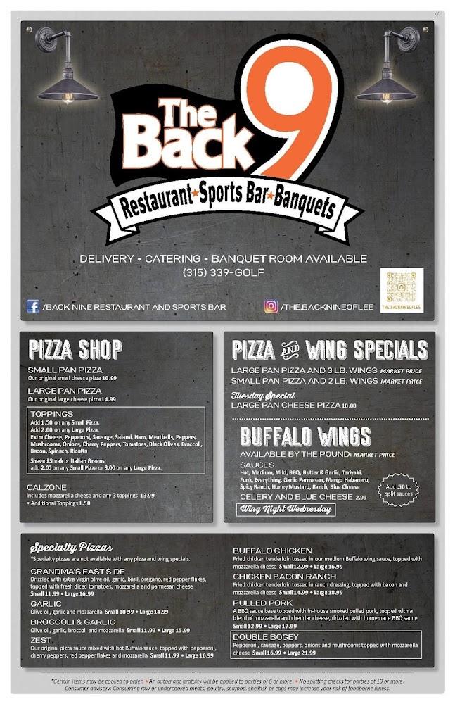 Welcome to The Back Nine Restaurant & Sports Bar, your go-to destination for delicious dining in Rome, NY! Located at 8752 Turin Rd, we offer a diverse menu featuring your favorites like pizza, pasta, wings, and fresh salads, all available for online ordering, delivery, and convenient takeout. Enjoy a vibrant atmosphere with amenities like live entertainment, a fireplace, and an extensive drink selection, including amazing cocktails and a wide variety of beers. Whether you're dining solo, with friends, or enjoying a casual lunch or dinner, The Back Nine promises a satisfying experience for everyone. Join us today!